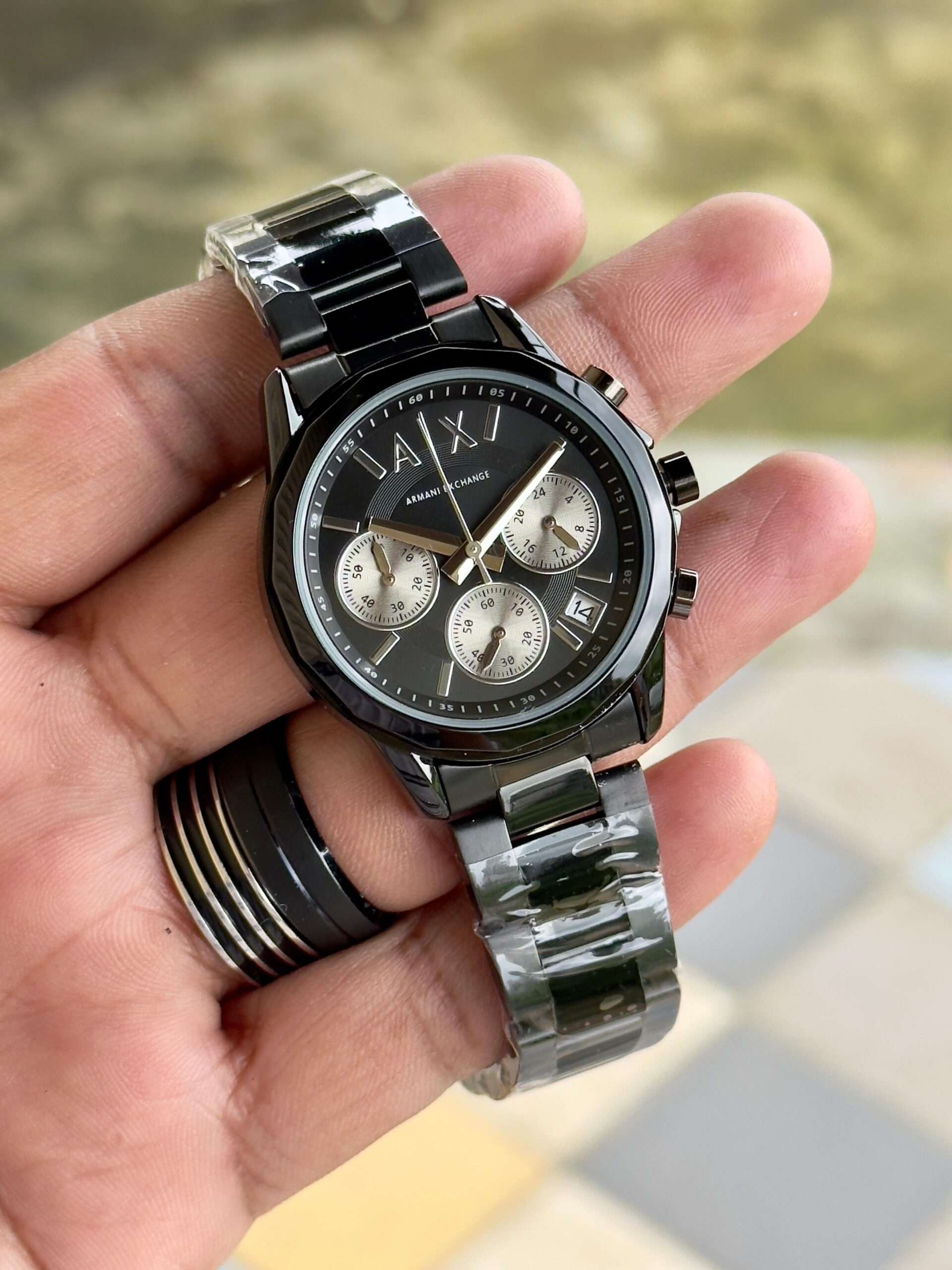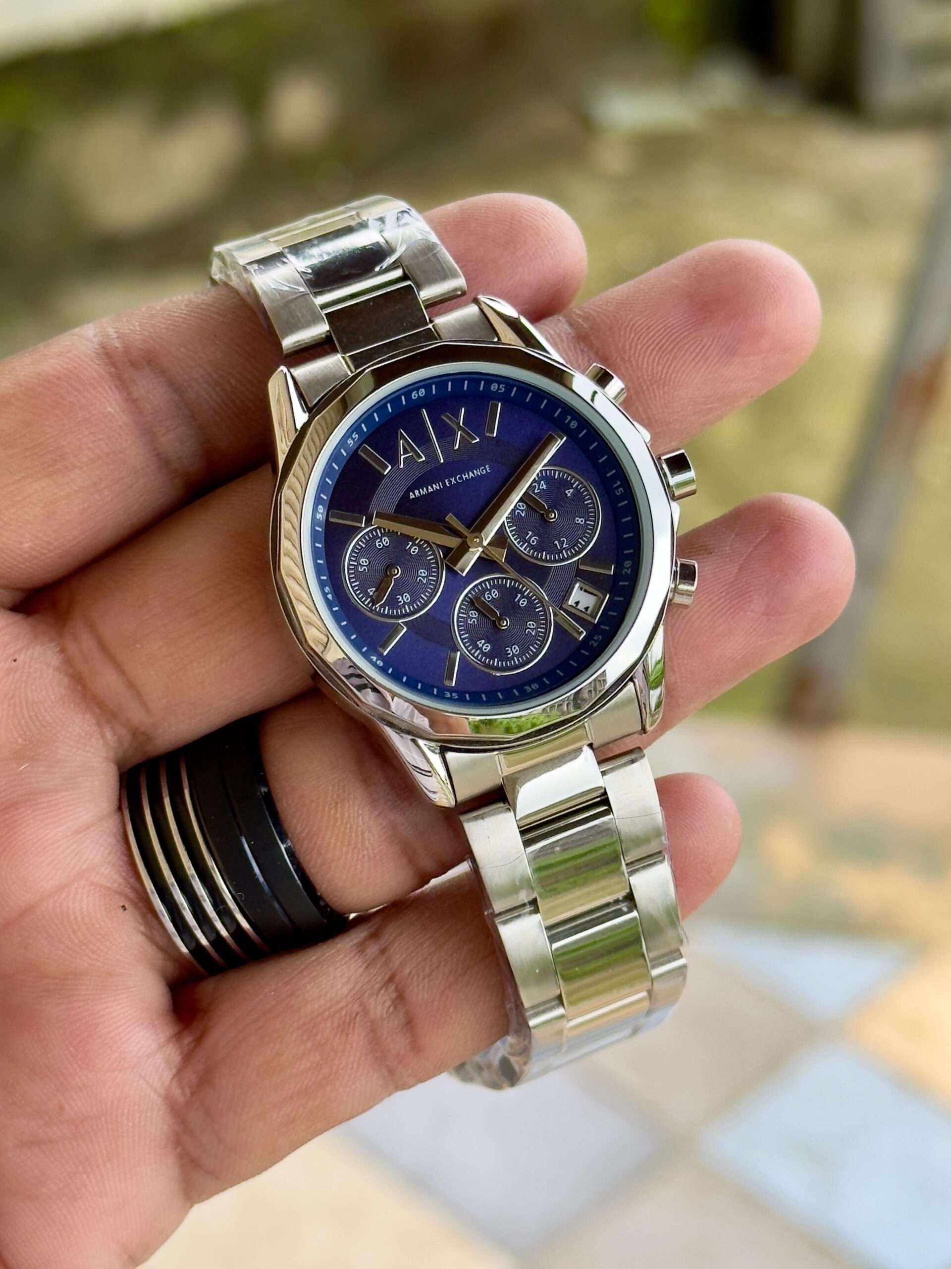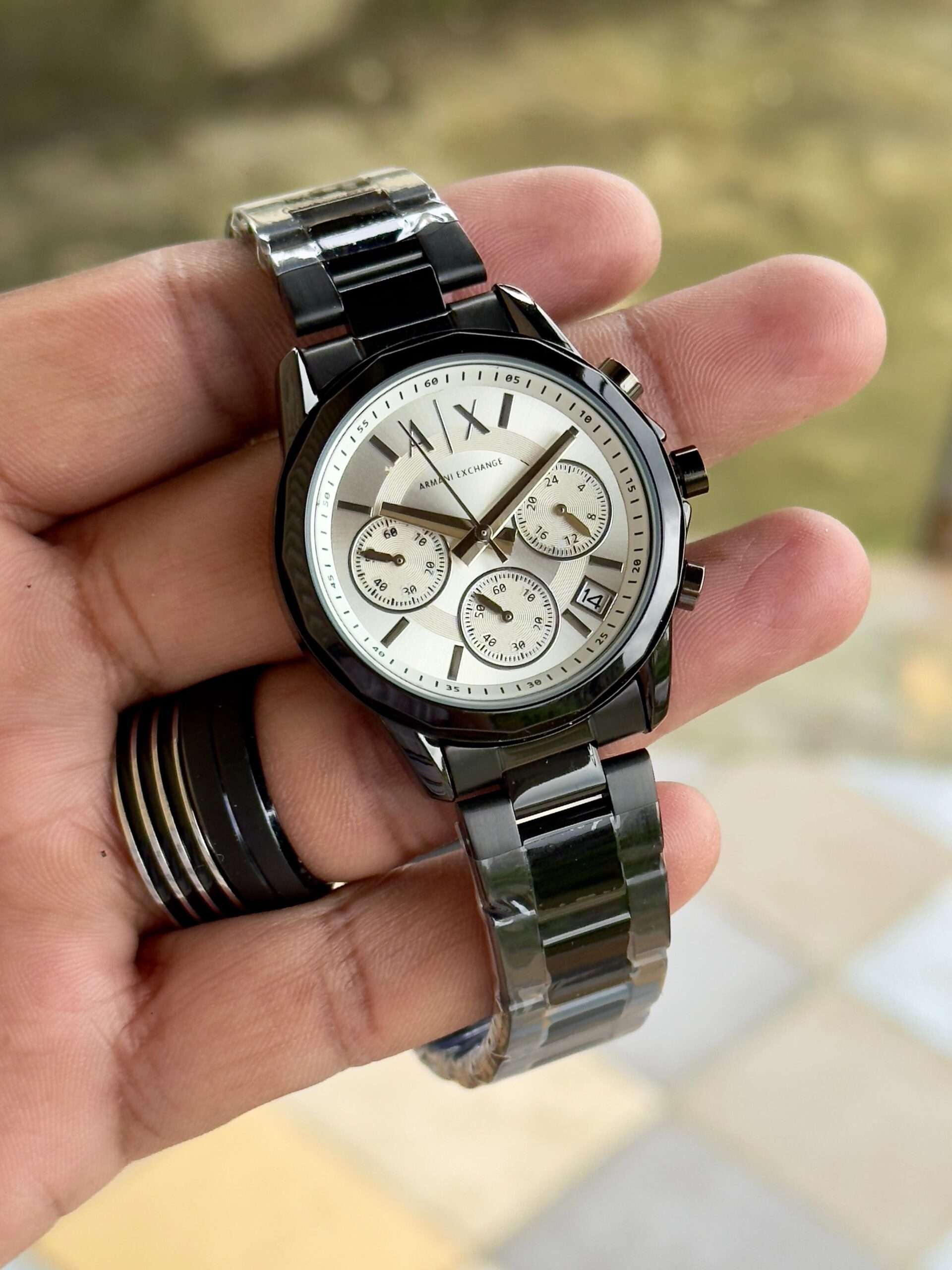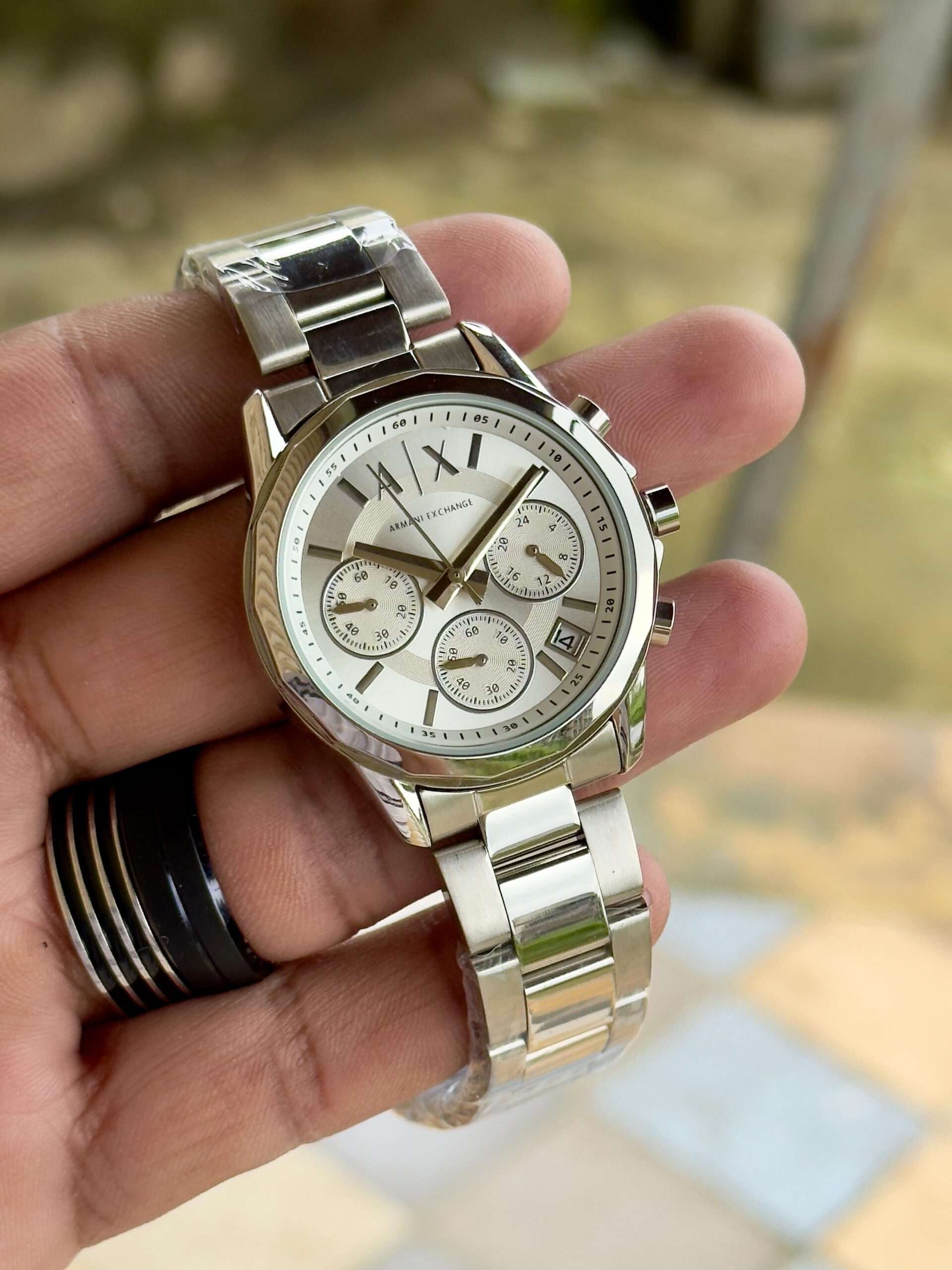 Adding to this is the “A|X” pressing lock, which provides both style and assurance. The secure clasp ensures the watch stays comfortably fastened while adding a signature branding detail. The engraved Armani Exchange initials highlight authenticity and reinforce the brand’s commitment to quality craftsmanship.
