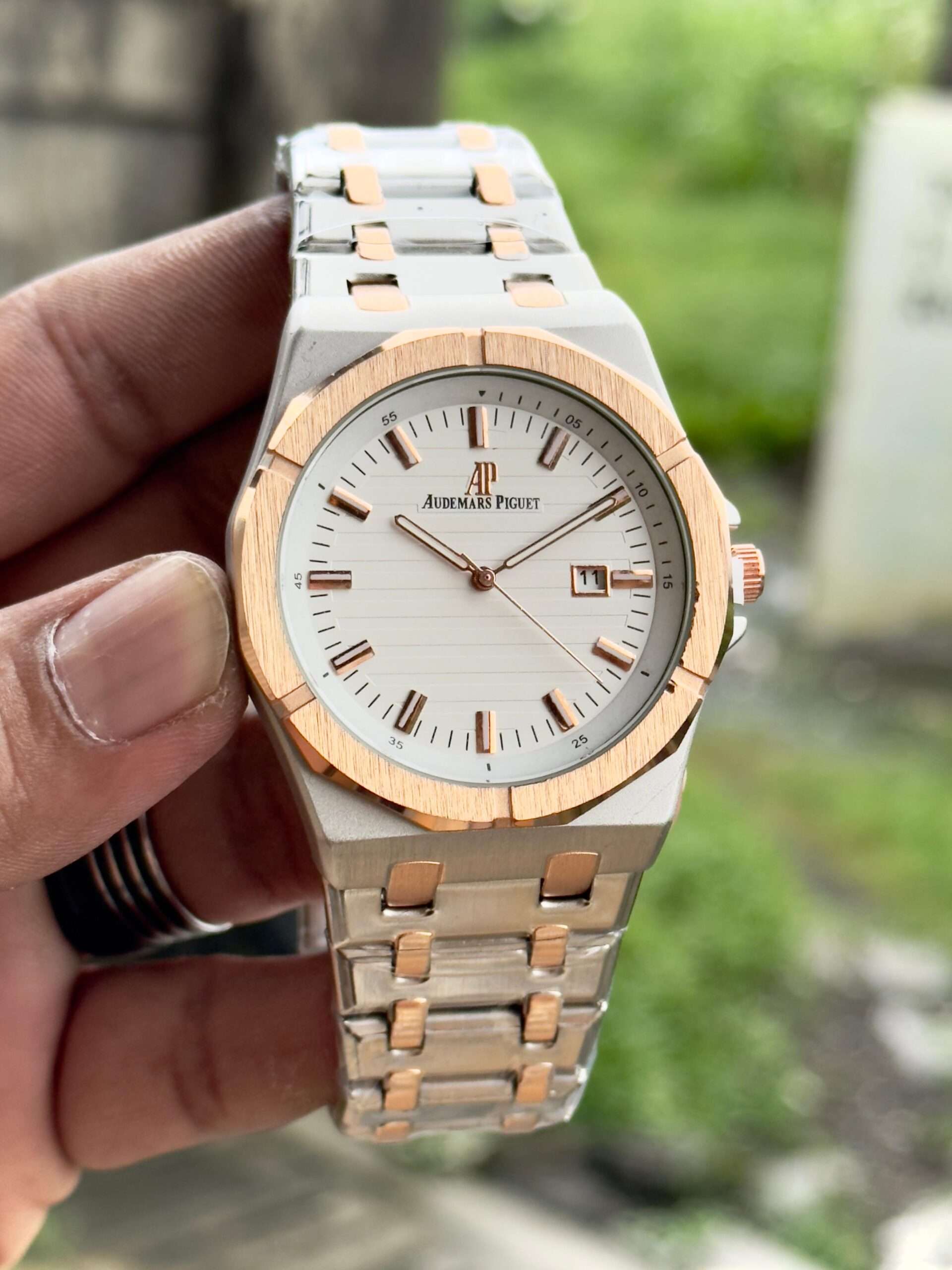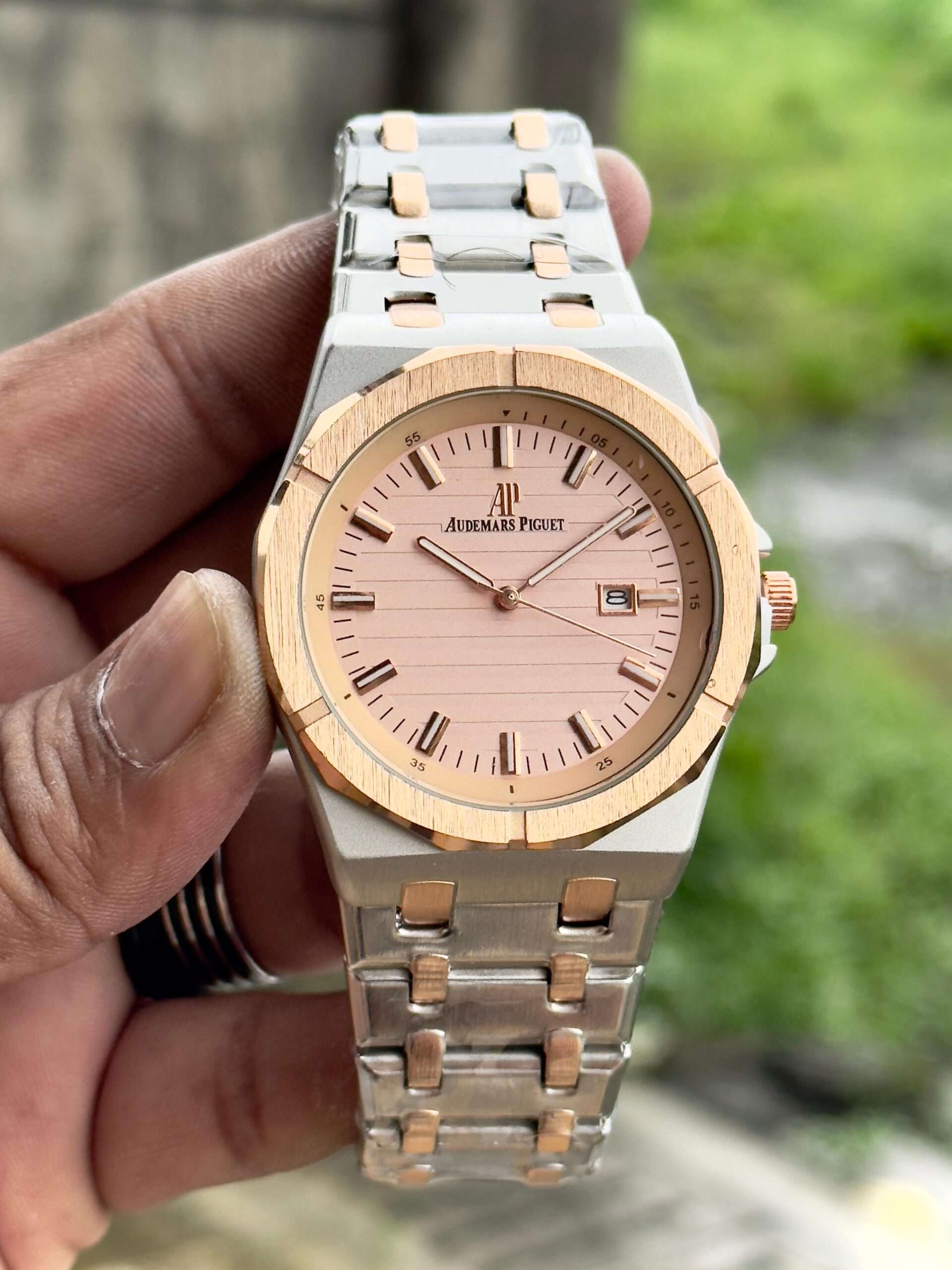 A timeless masterpiece, this Audemars Piguet radiates elegance with its sleek two-tone finish and iconic Royal Oak design.