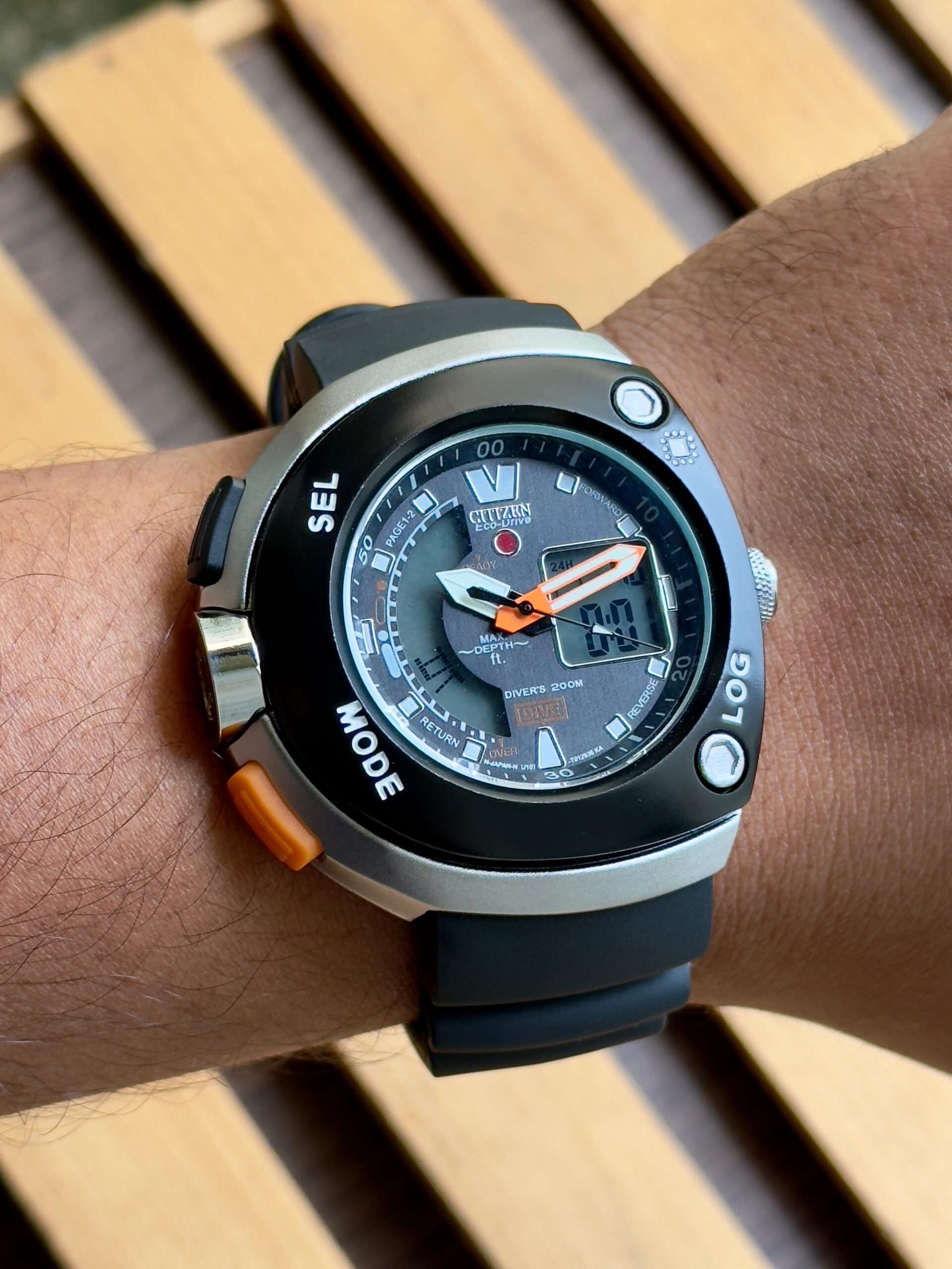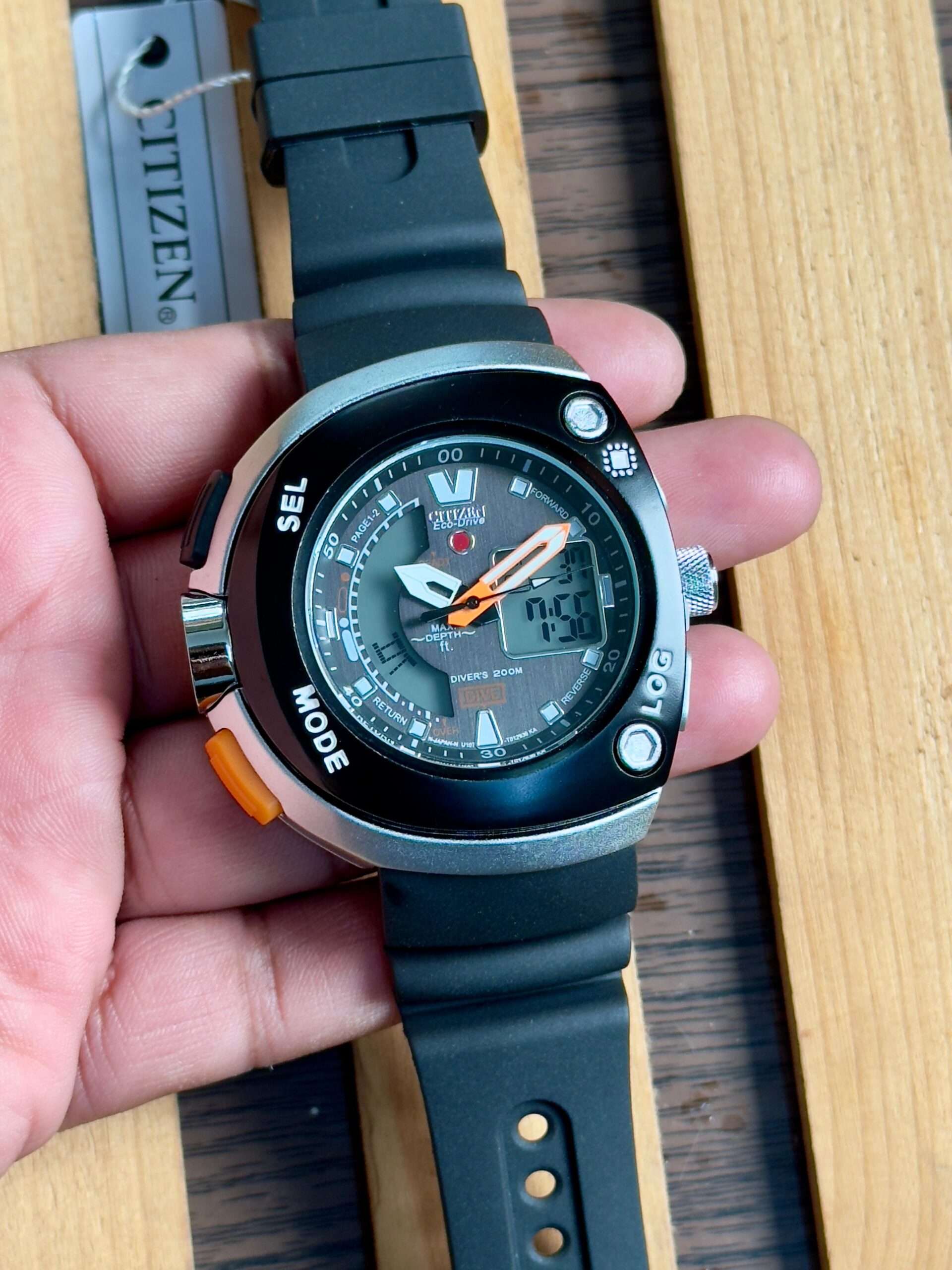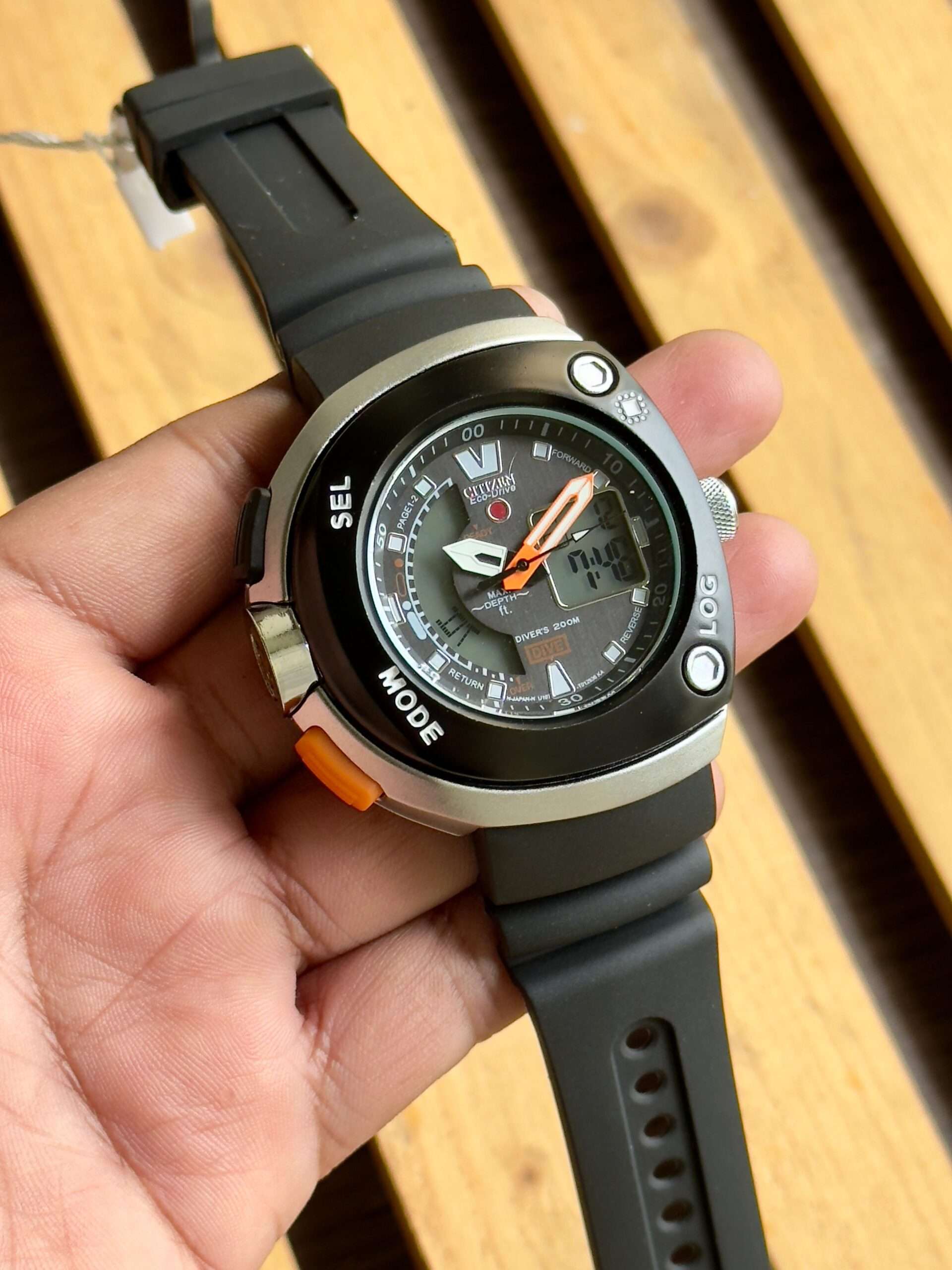 A rugged and stylish Citizen Eco-Drive watch that combines analog precision with digital functionality for ultimate performance.