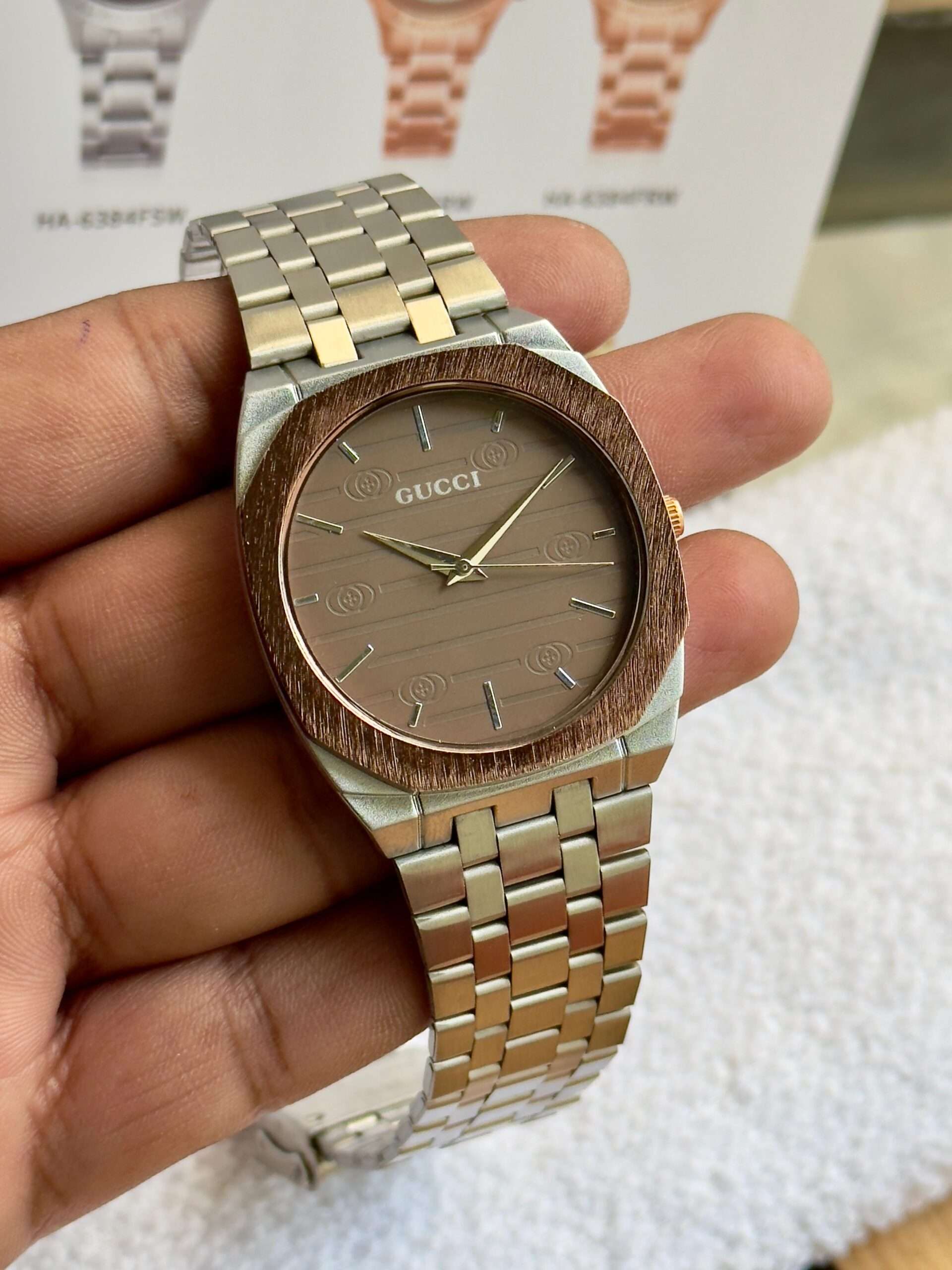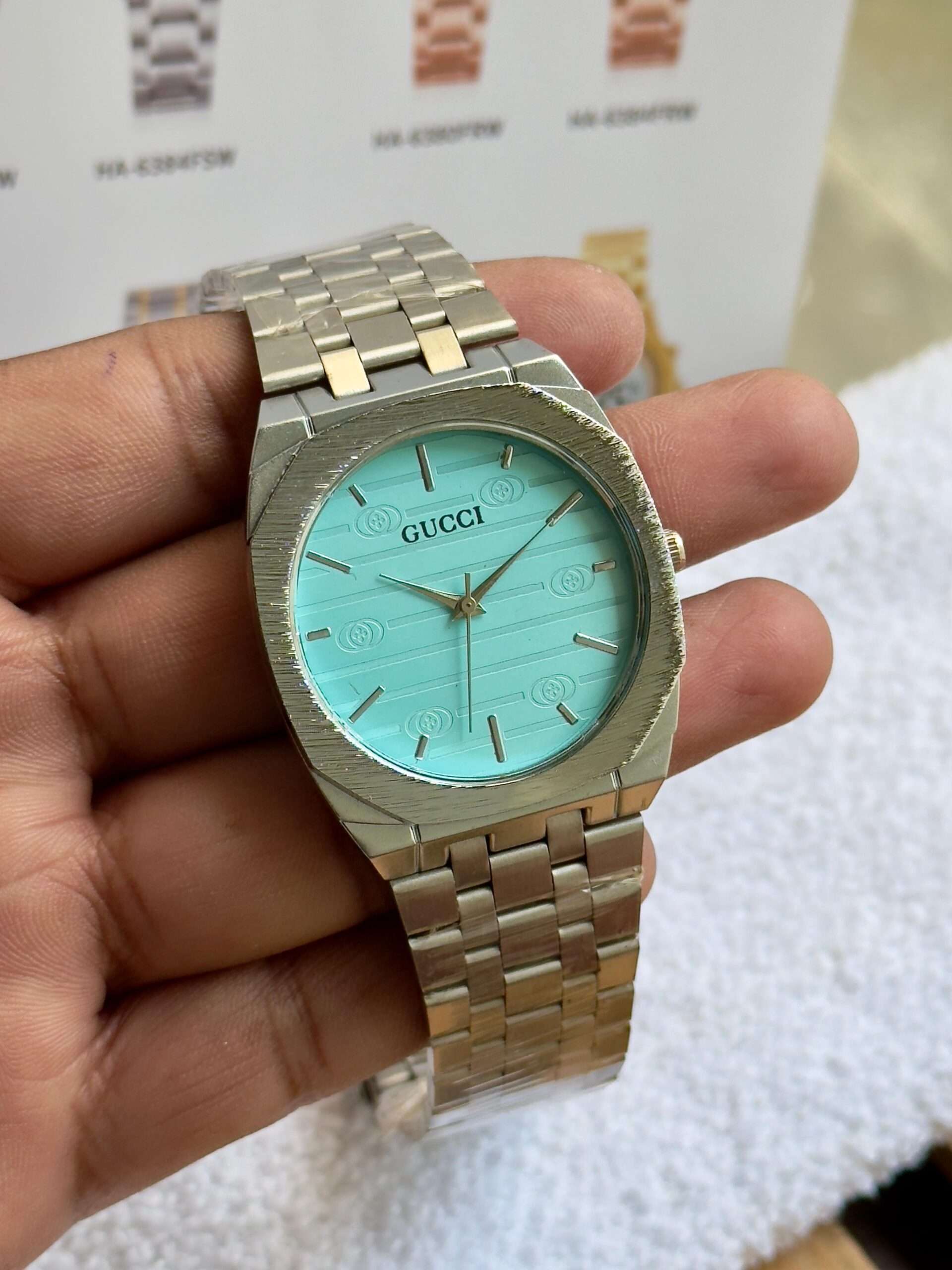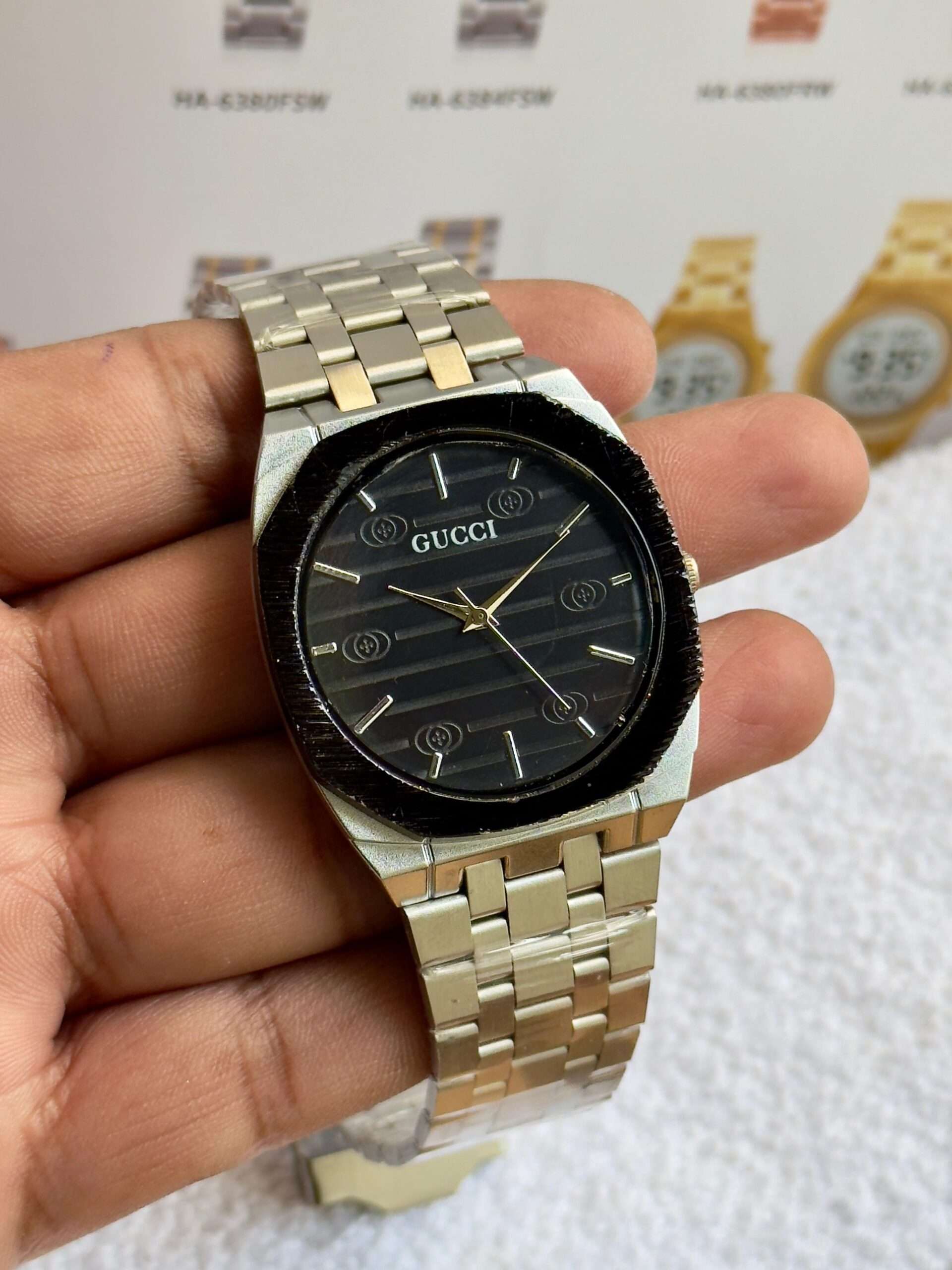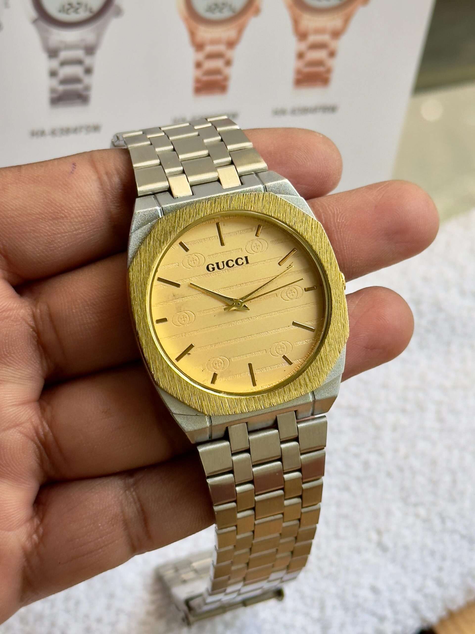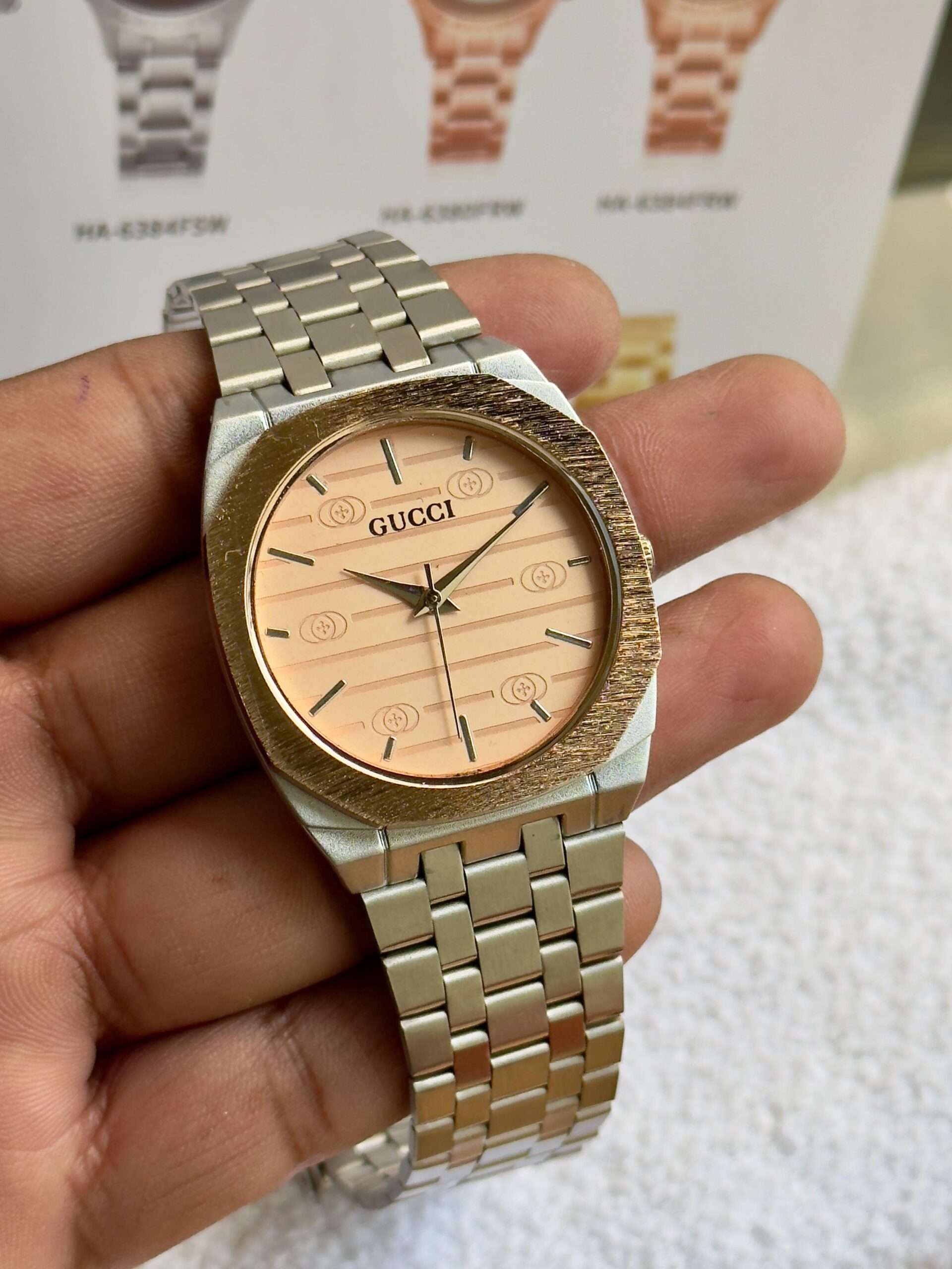 A perfect blend of vintage charm and luxury, this Gucci timepiece radiates understated elegance.