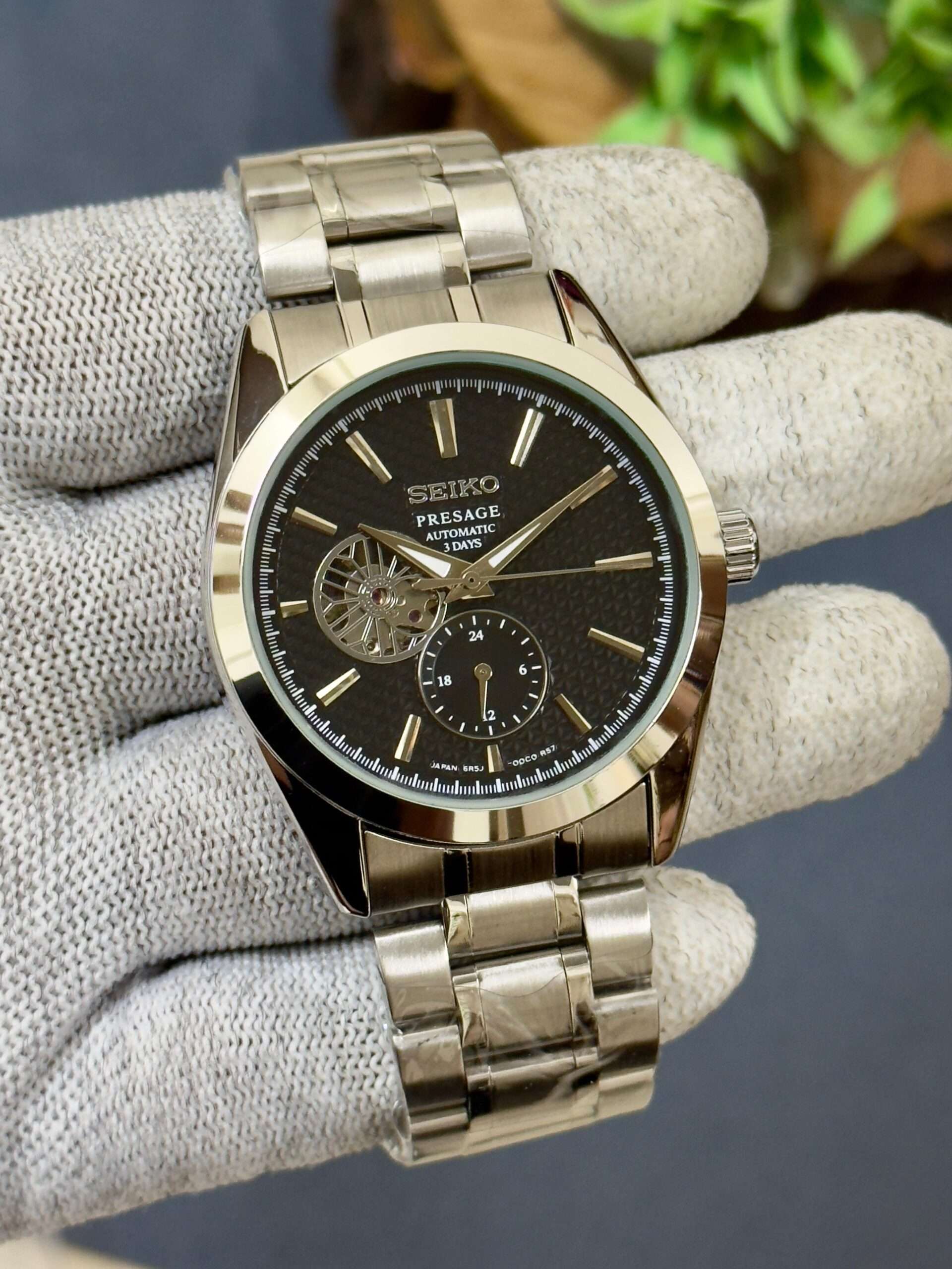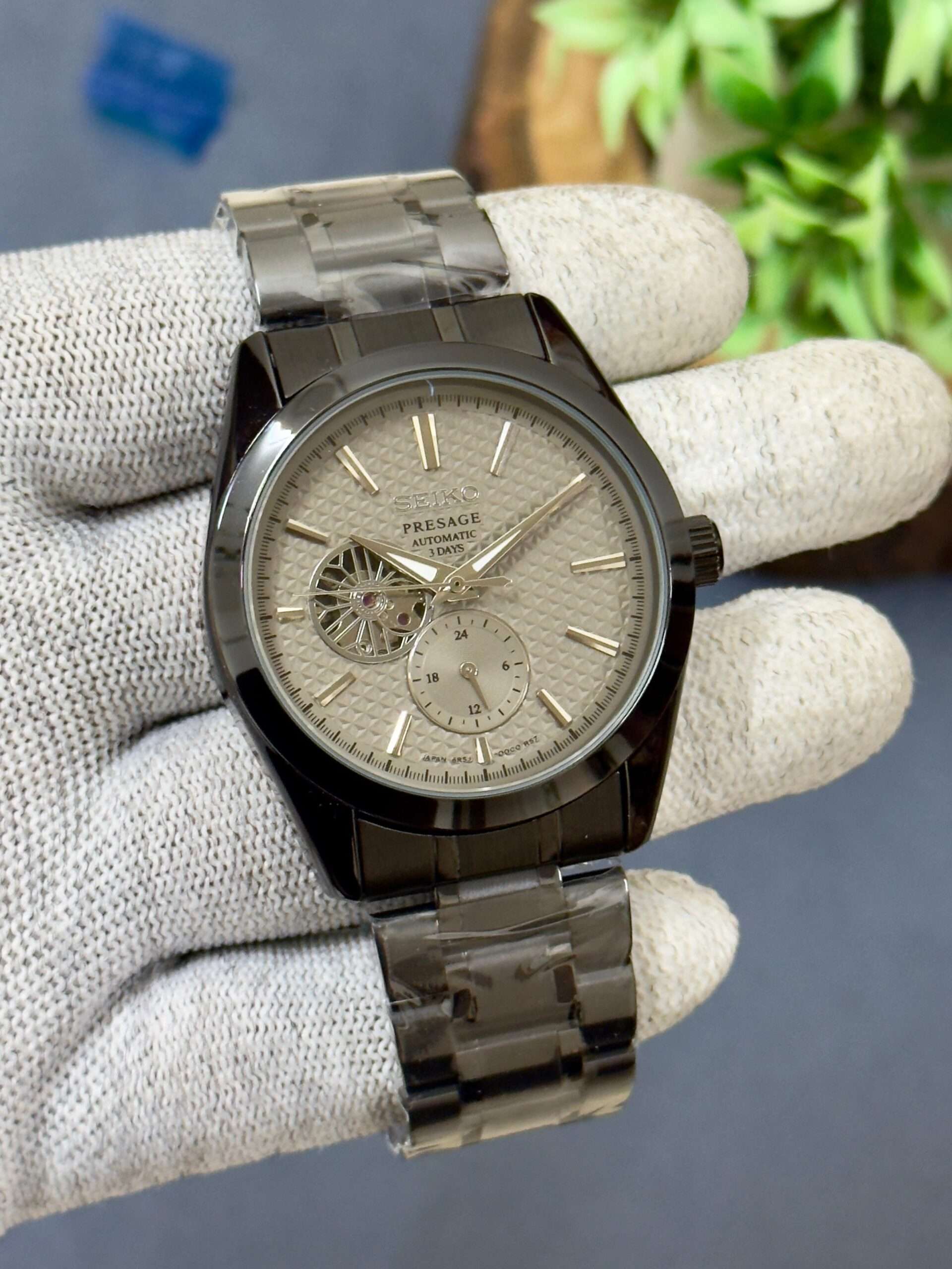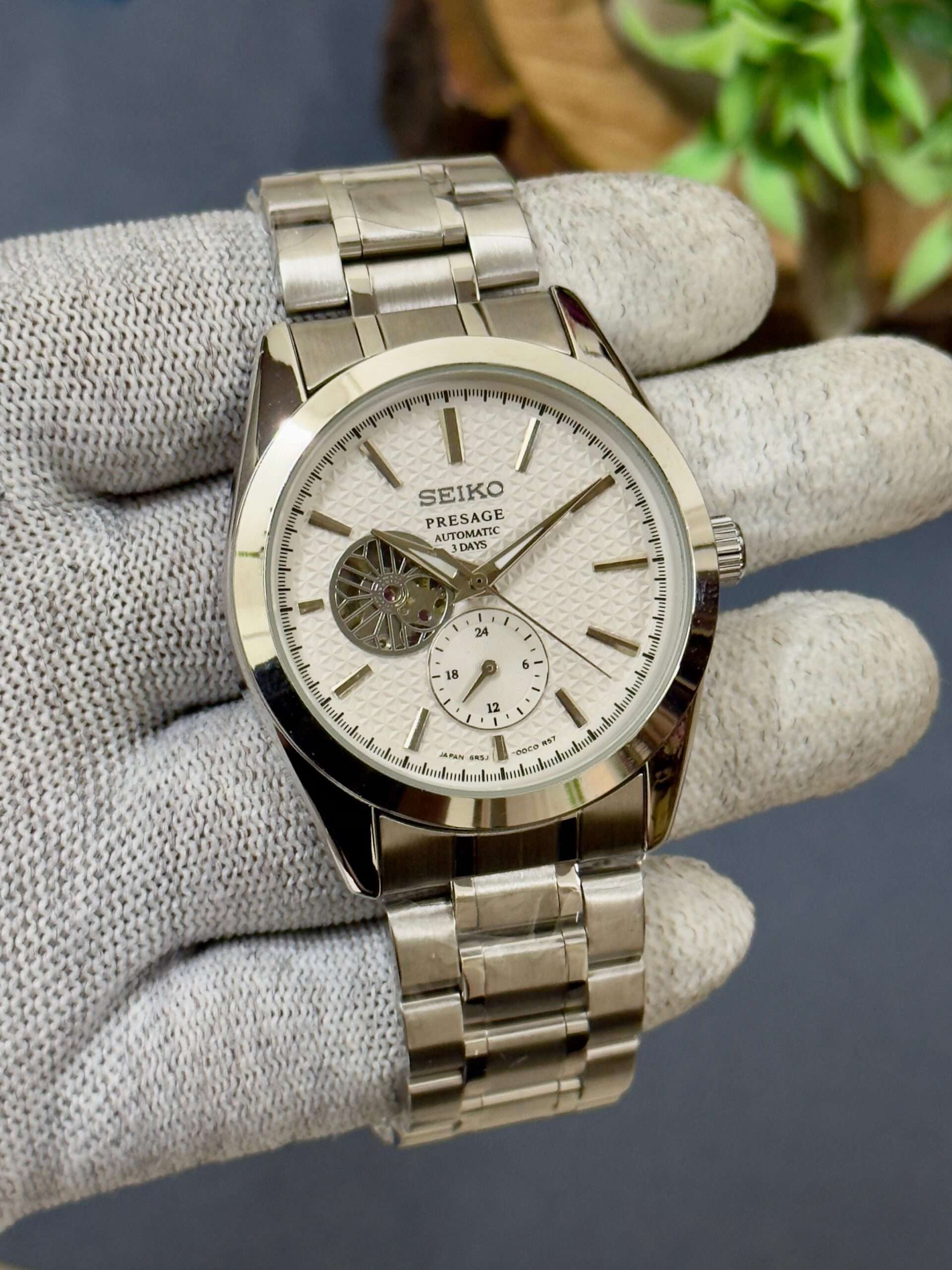 A stunning blend of elegance and craftsmanship, this Seiko Presage radiates sophistication with its textured dial and open-heart design.