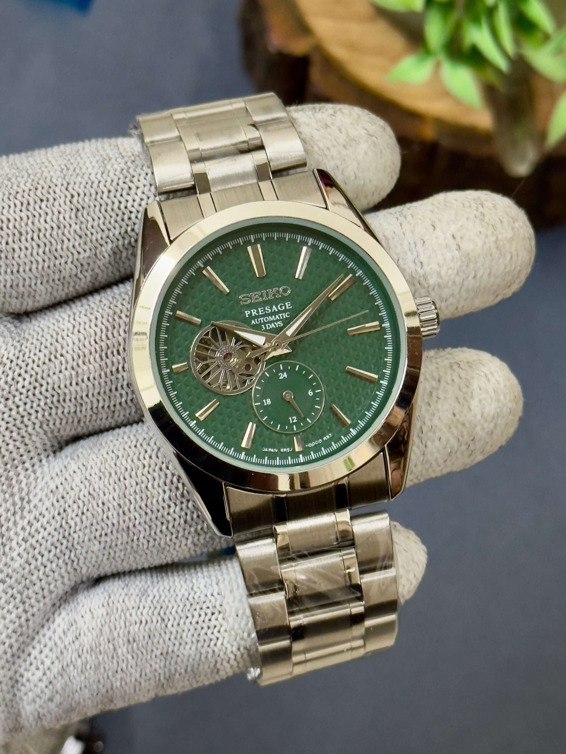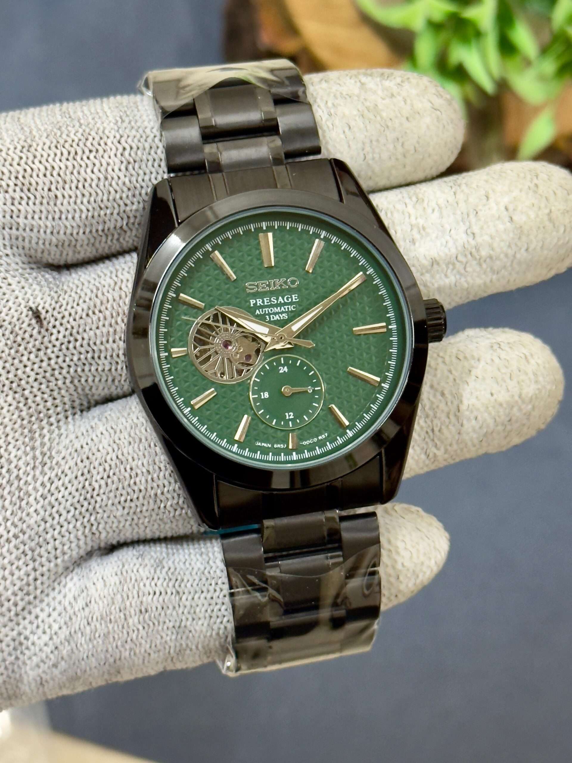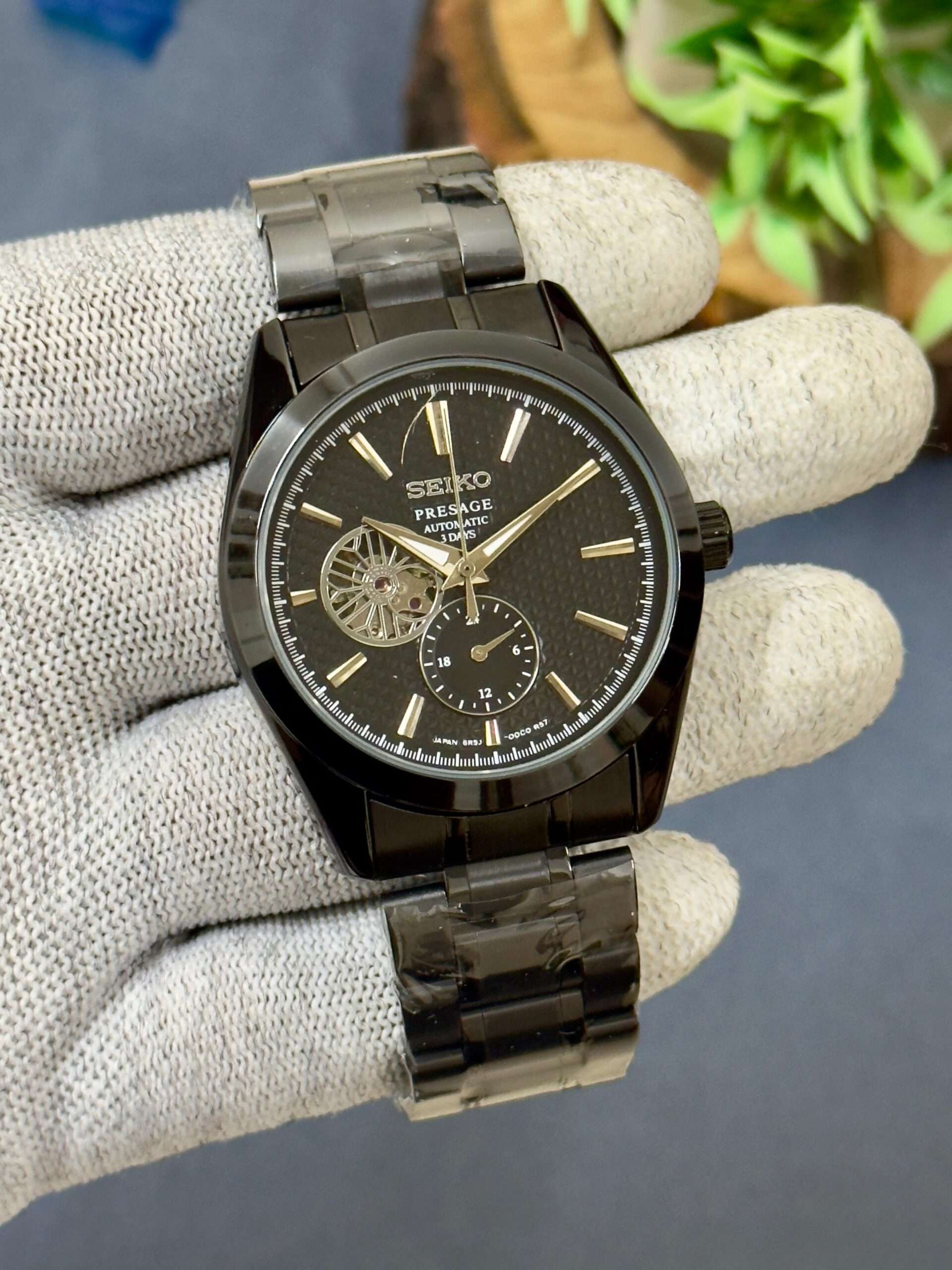 A stunning blend of elegance and craftsmanship, this Seiko Presage radiates sophistication with its textured dial and open-heart design.