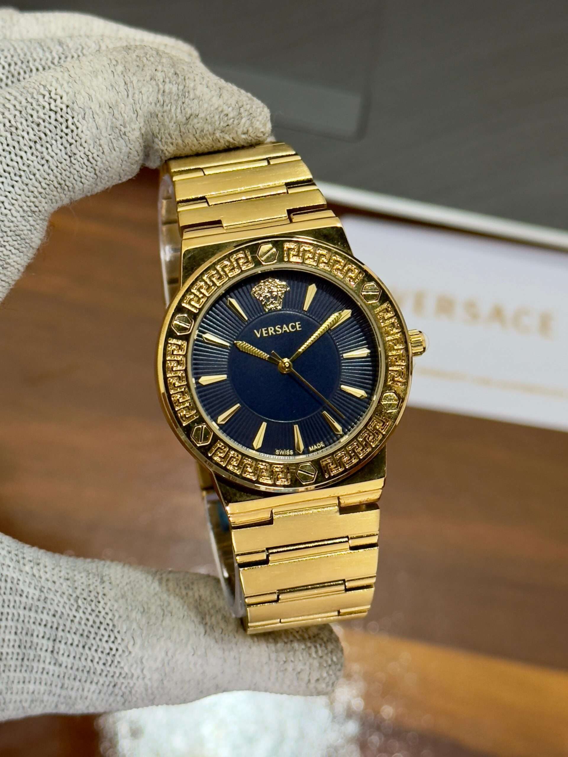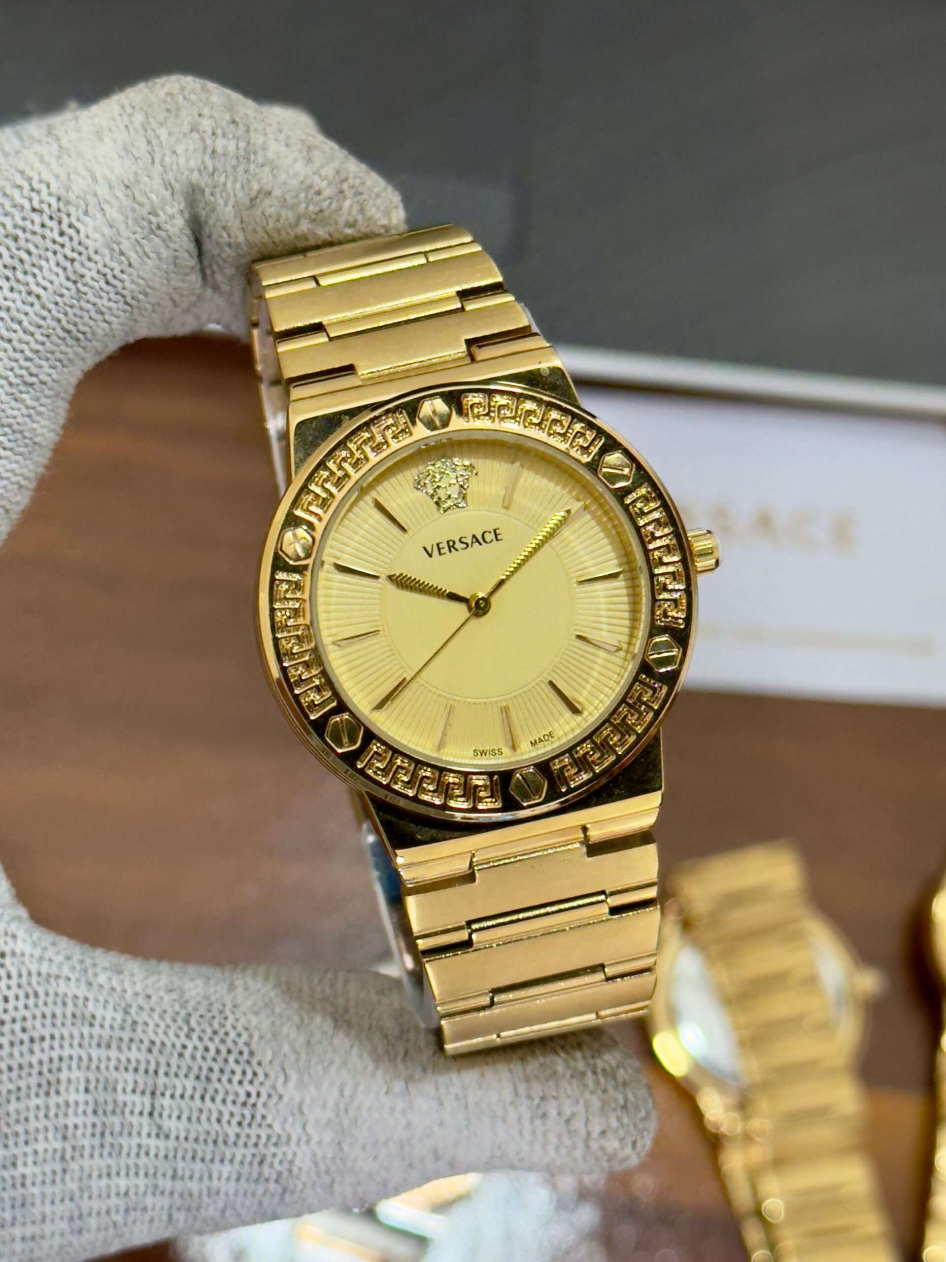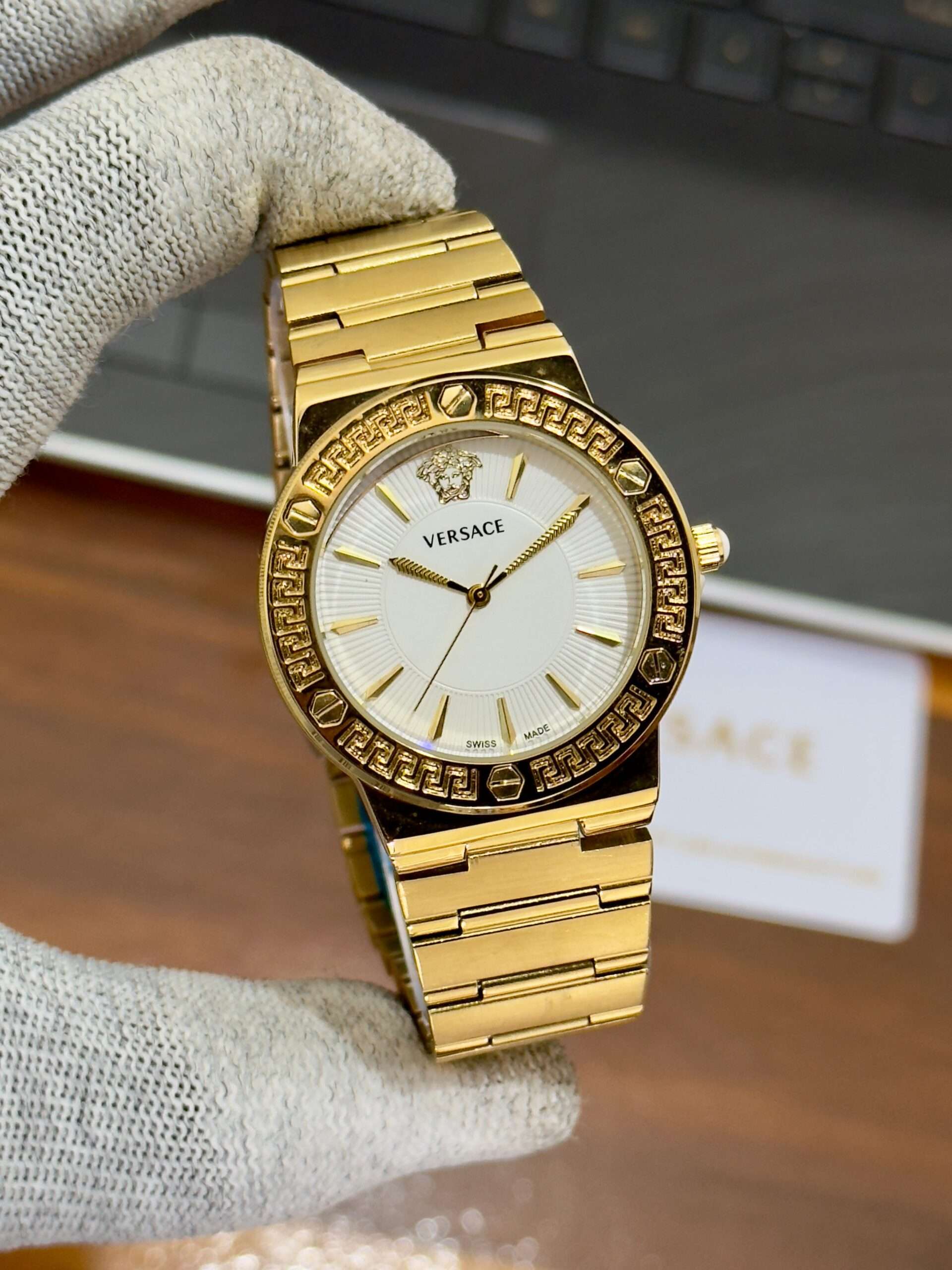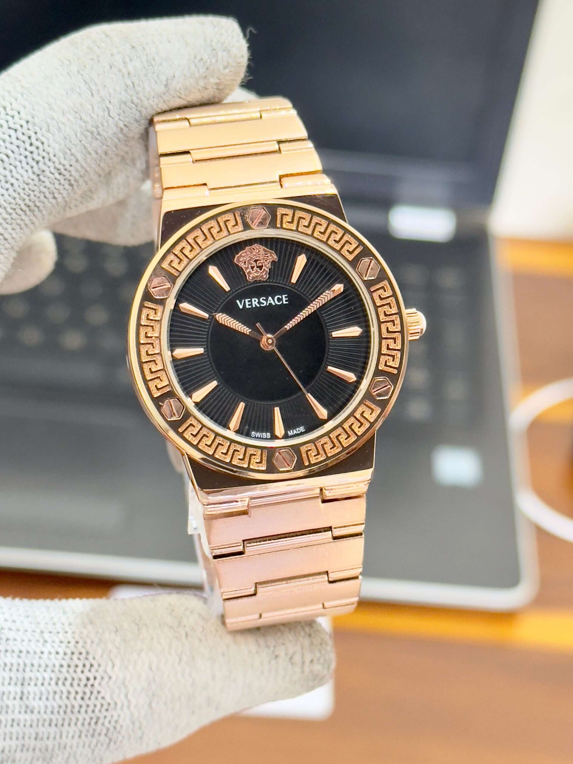 A luxurious Versace timepiece — its bold dial perfectly define timeless sophistication.