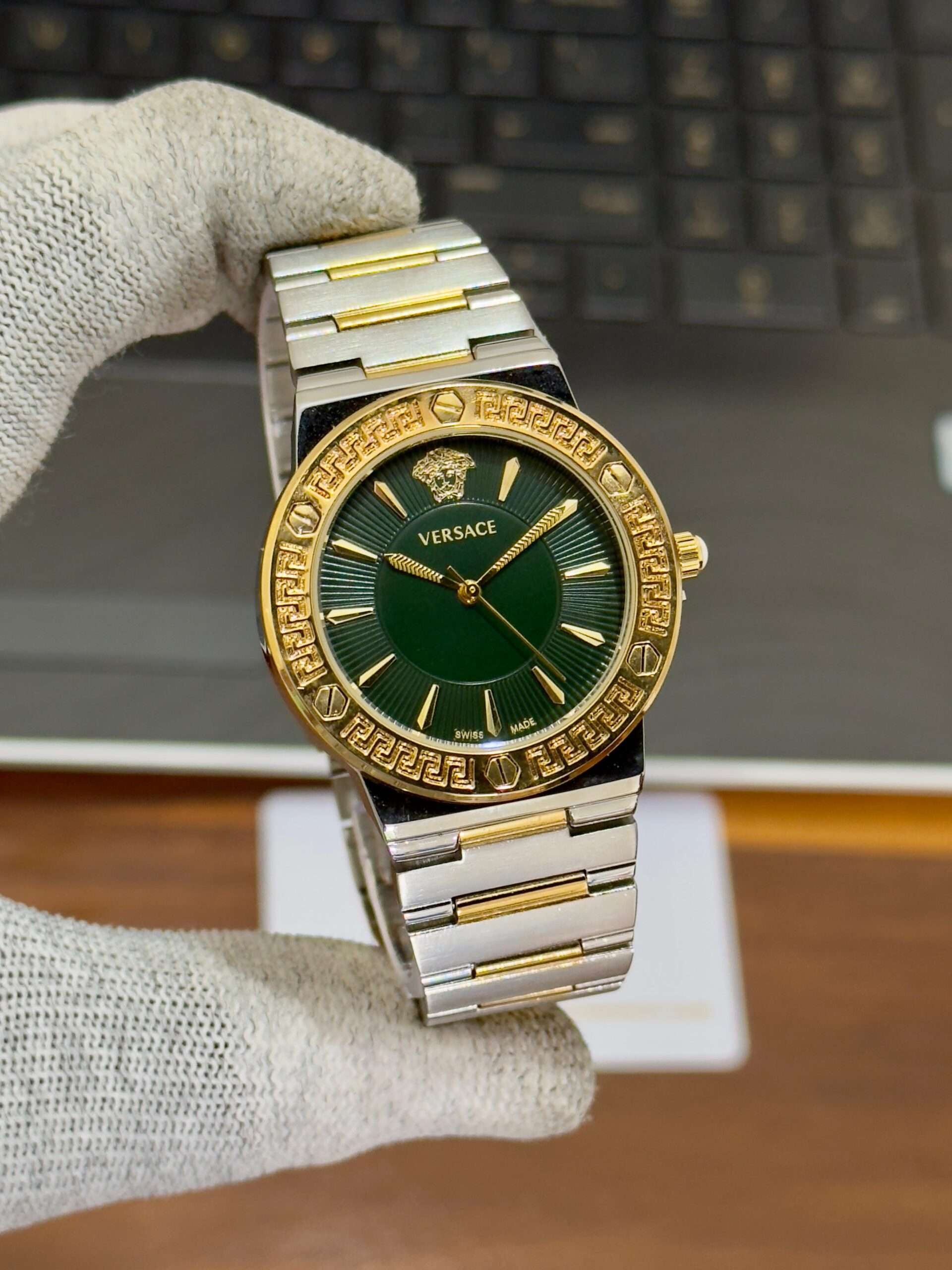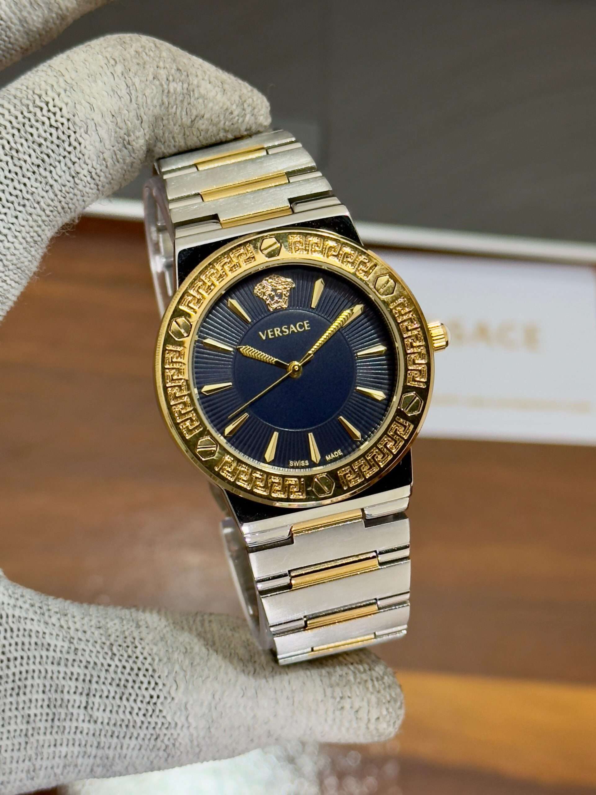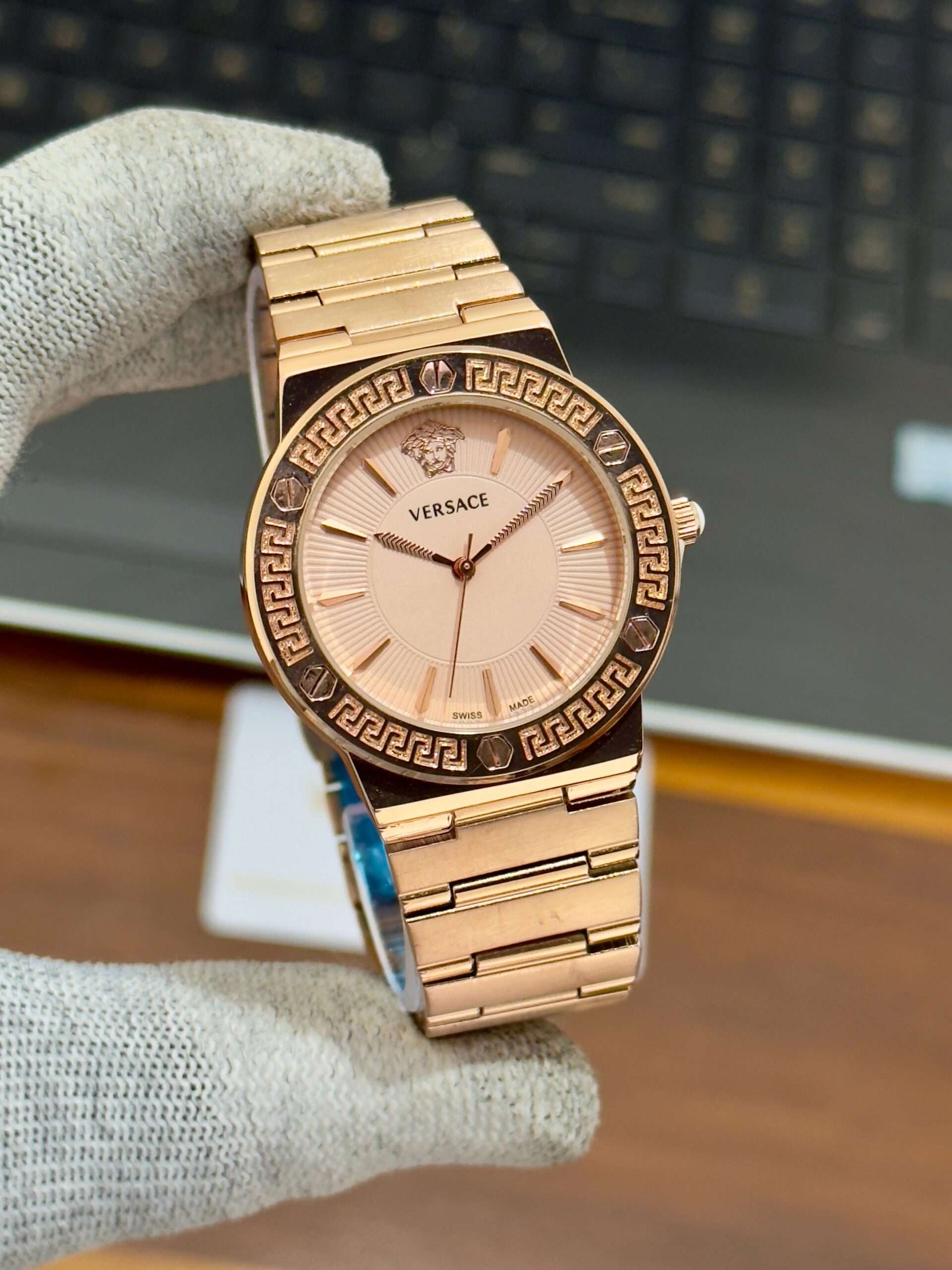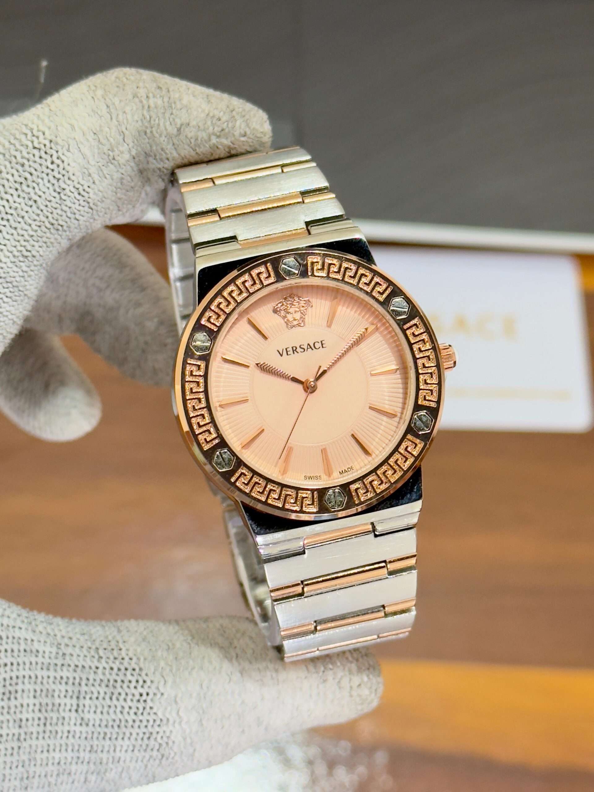 A luxurious Versace timepiece — its bold dial perfectly define timeless sophistication.